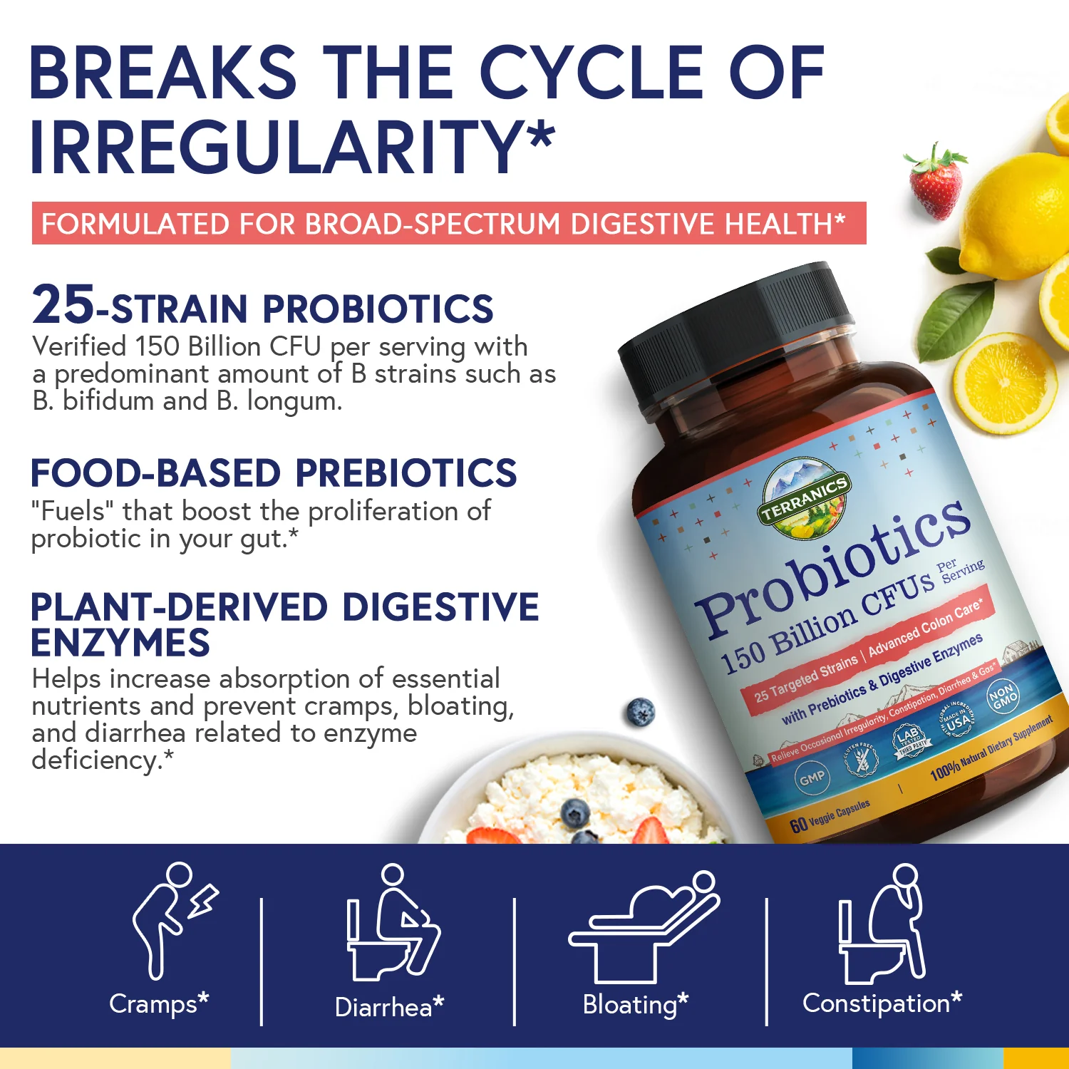 Terranics 150 Billion Colon Care Probiotics with Prebiotics & Enzymes - 60 Vegan Caps